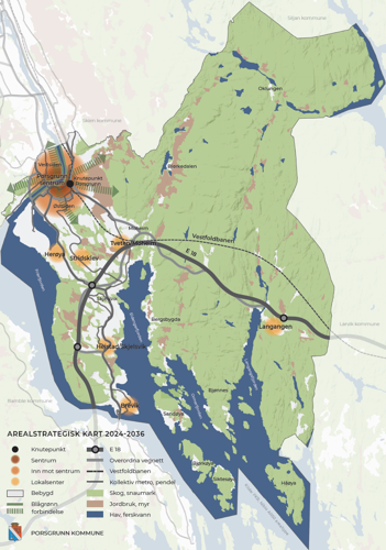 Arealstrategien er vedtatt og planprogrammet for revisjon av kommuneplanens arealdel 2024-2036 er fastsatt av Bystyret (sak 79/24) den 20.06.24. Kommuneplanens arealdel fastsetter sammen med godkjente reguleringsplaner hvilke nye tiltak som kan settes i gang rundt om i kommunen. Arealdelen skal også beskrive viktige hensyn som må tas når kommunen skal utvikles.